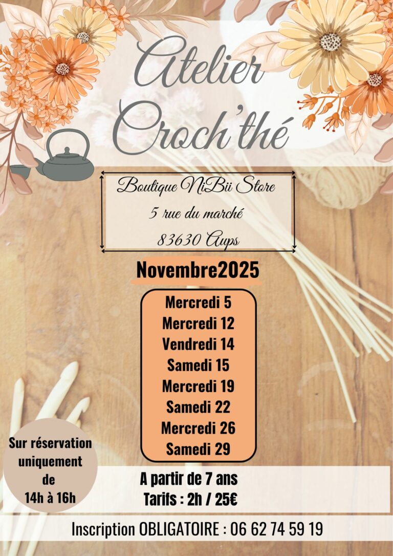 Chaque mois, la boutique NiBii à Aups se transforme en un petit cercle créatif où se tiennent les ateliers Croch’Thé 🧶☕